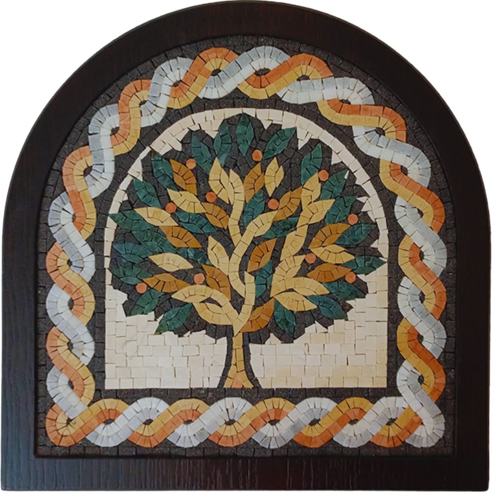 The Arched Tree Marble Mosaic is a handcrafted masterpiece made from natural stones and hand-cut tiles, perfect for decorating walls or tabletops. Its unique design makes it suitable for indoor and outdoor use, including in bathrooms and pools. Weighing 15 kg and measuring 45 x 45 cm, it can be customized to fit your size and color needs.