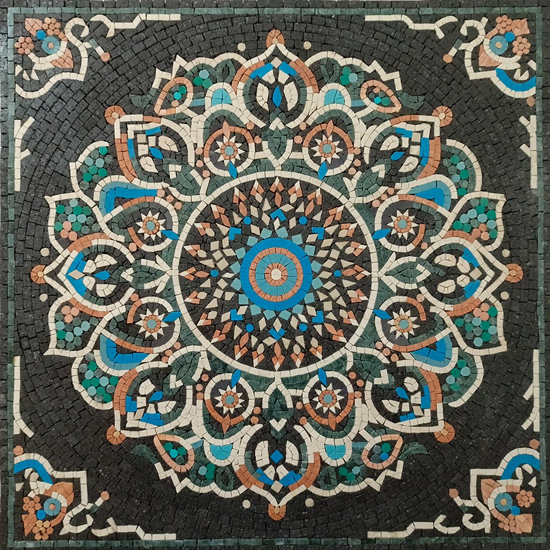 Decorate the entryway or floors and walls of your new home with this handcrafted Geometrical Floral Mosaic. Made from natural marble and stone, these durable tiles bring elegance and beauty to any indoor or outdoor space.