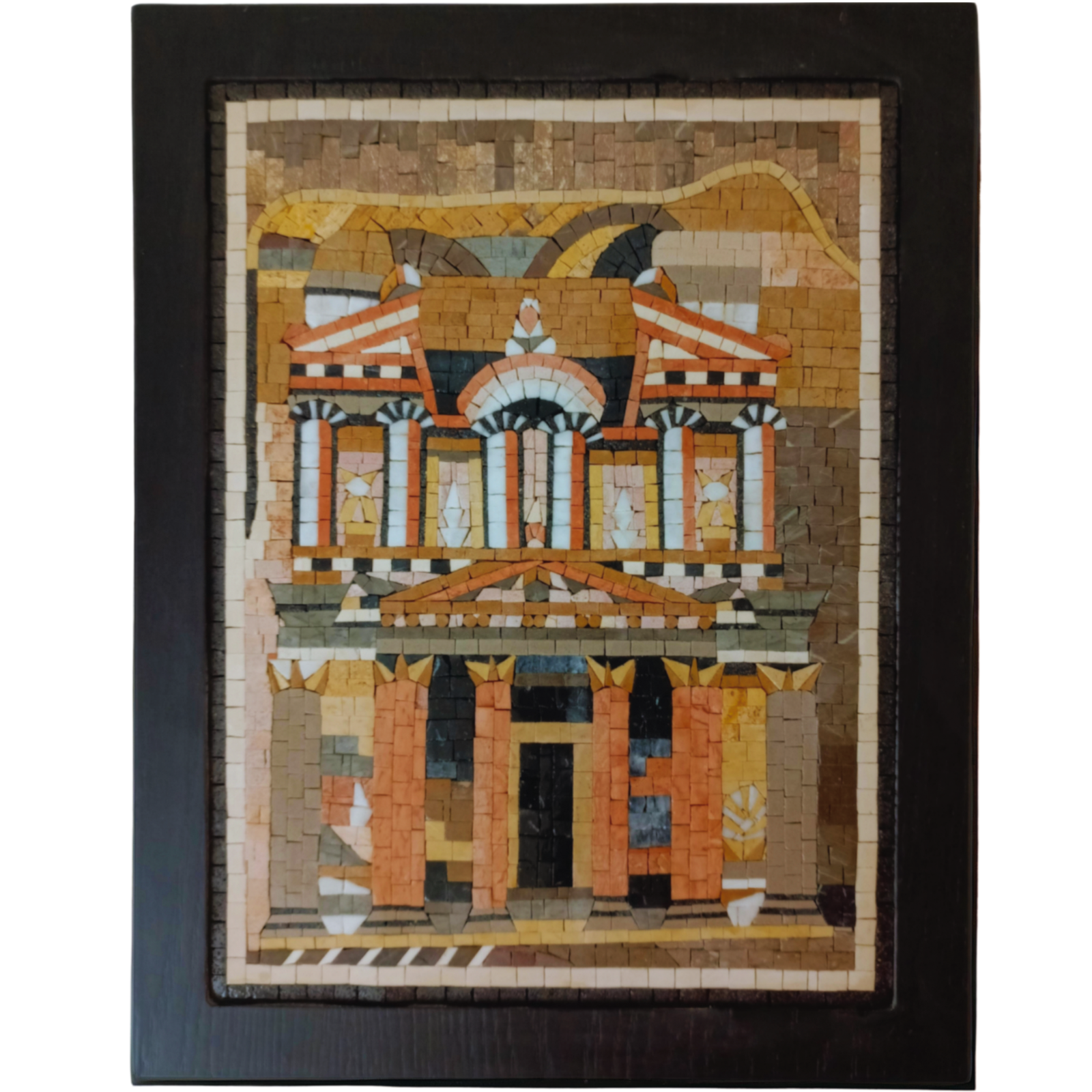Celebrate the beauty of Petra, the iconic archaeological site in Jordan, with this handcrafted mosaic artwork. Meticulously designed to capture the intricate details of the ancient landmarks, this piece brings a unique artistic touch to your home or office décor.